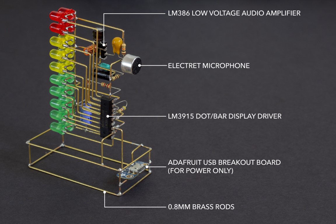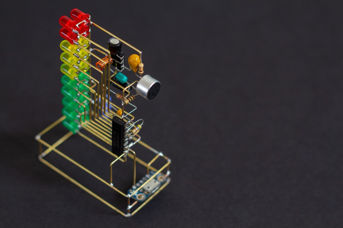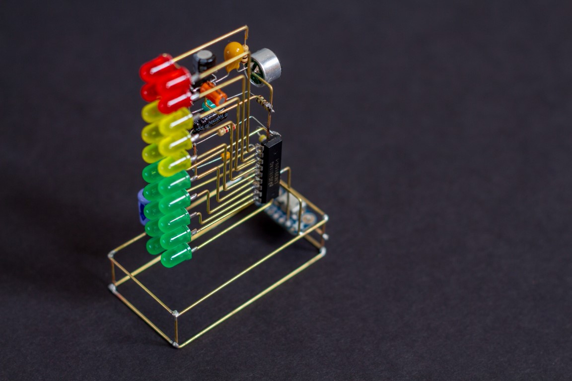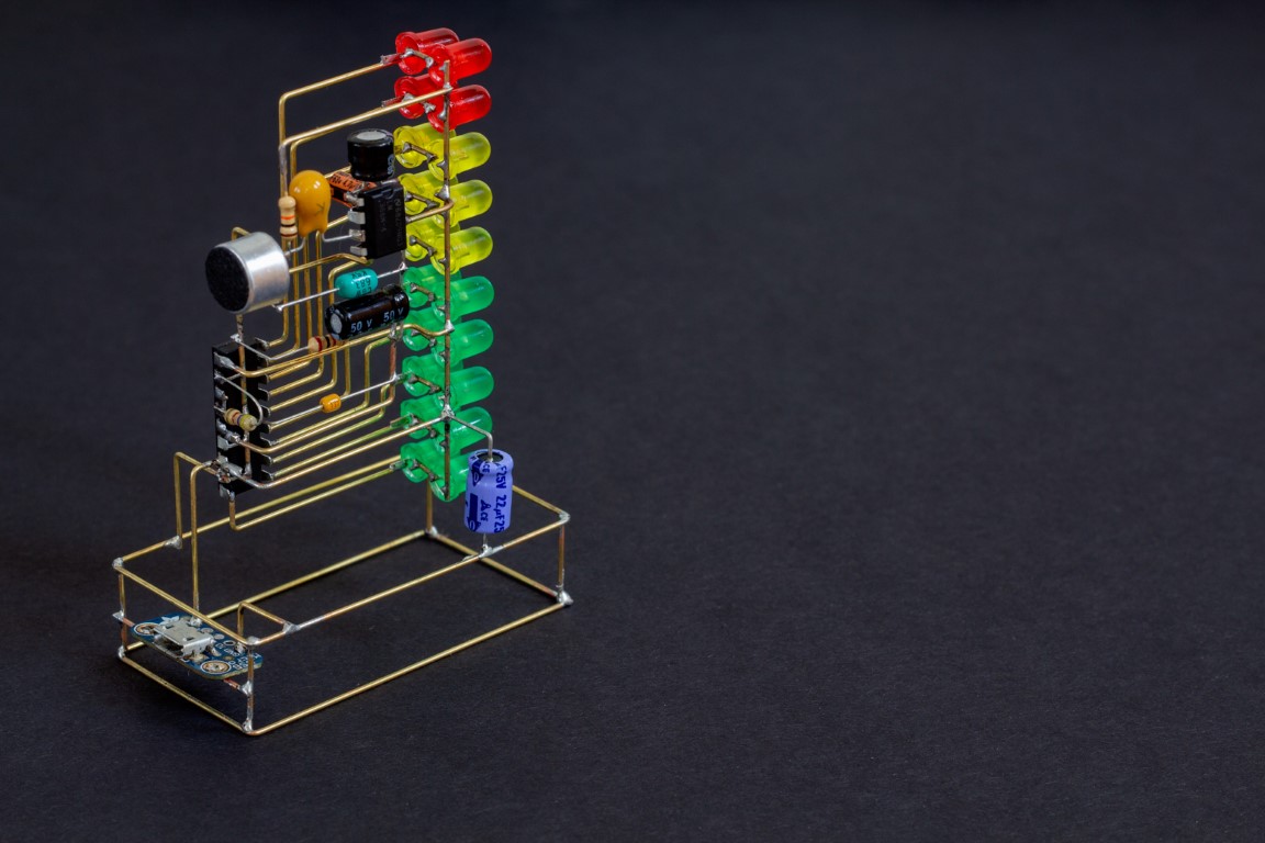 Работает, даже можно уменьшить чувствительность – загораются все лампочки от не очень громкого звука.