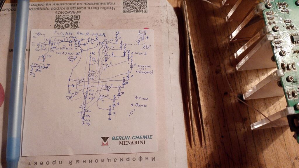 Настройка схемы ( для тех, кто не первую самоделку делает ). Если опыта маловато – проще отнести на радиорынок или в ремонтную мастерскую, и посмотреть – как эту штуку починят. Самая распространенная ошибка при монтаже – перепутаные номиналы деталей и переполюсовка компонентов – в этой схее относится к светодиодам и к диодикам – защитному и для выпрямления усиленного напряжения.