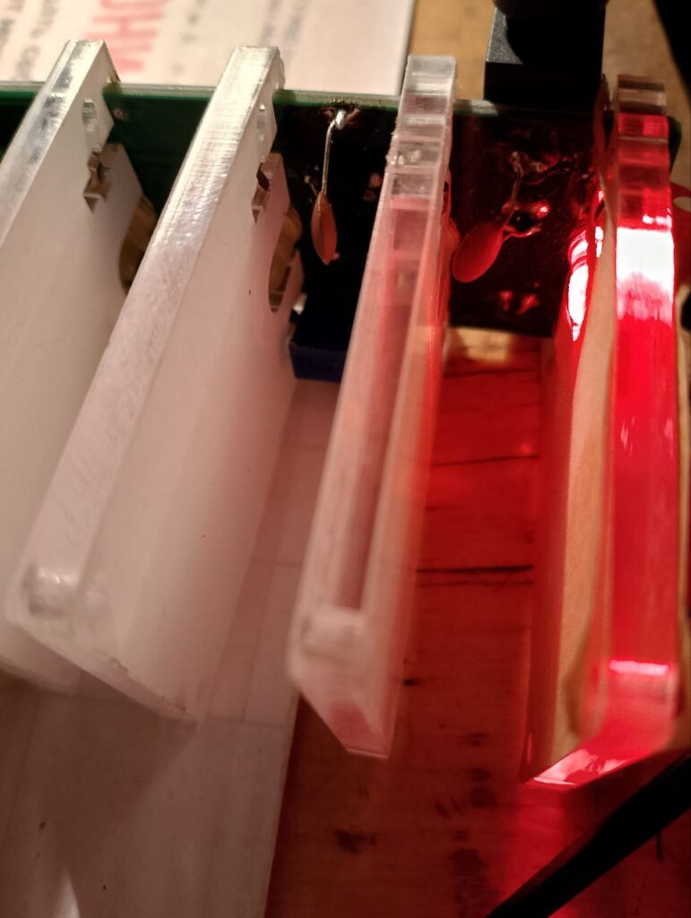 2 конденсатора 104 или 0.1 мкф до и после диода, по питанию. Кондер на 3300 и 104 в параллель – на проводе блока питания, он корейский samhwa.. одна из компаний, не перепутавших электролит, и эти кондеры лет 30 поработают. Уровень пульсаций смотреть осциллографом – там есть режим постоянного тока при измерении и переменного – сначала на постоянном – изначально были пульсации 4 вольта при питании в 12, и включились ВСЕ светодиоды, вместо одного нижнего. Потом, по мере добавления конденсаторов – на пределе 0.1 вольт на деление переменного тока. Пульсации не должны превышать 1 деление.