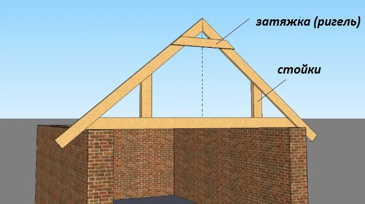 Второй вариант предусматривает стойки с двух сторон и обязательное устройство ригеля, стягивающего две противоположные стропильные ноги. Эта конструкция напоминает мансардный этаж: