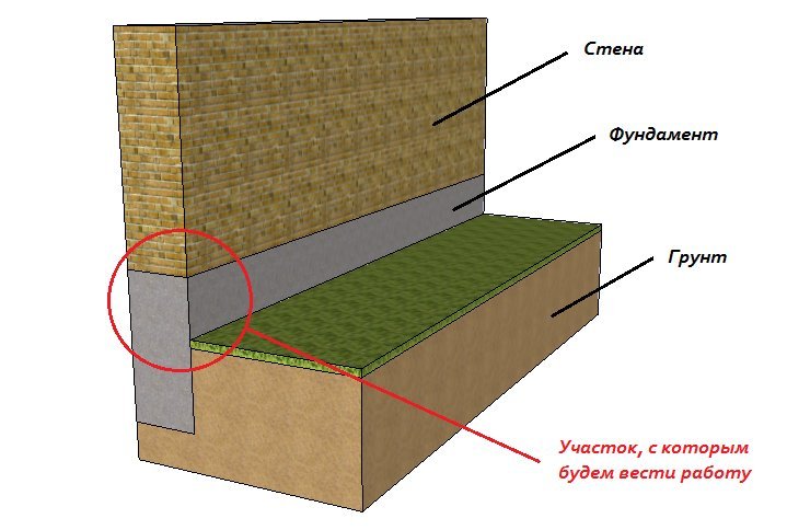 Итак, мы не хотим копать и не хотим тратить лишние деньги на бетон и арматуру. Поэтому, сосредотачиваемся на участке фундамента, который расположен выше земли до начала стены дома.