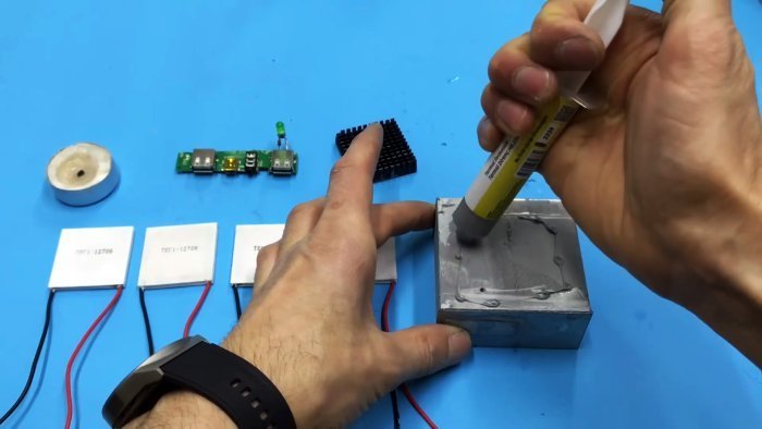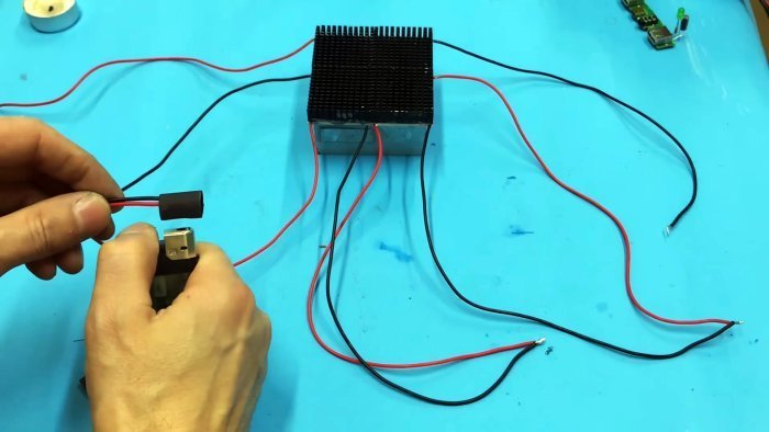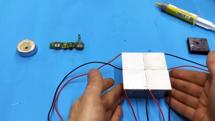 Следует отметить, что элемент Пельтье может работать и в обратном порядке: если одну его сторону нагреть, а другую охладить, то узел будет вырабатывать ток. Чем больше разница температур, тем выше вырабатываемая сила тока. Именно эту замечательную особенность мы и будем использовать в опыте с зарядкой смартфона.