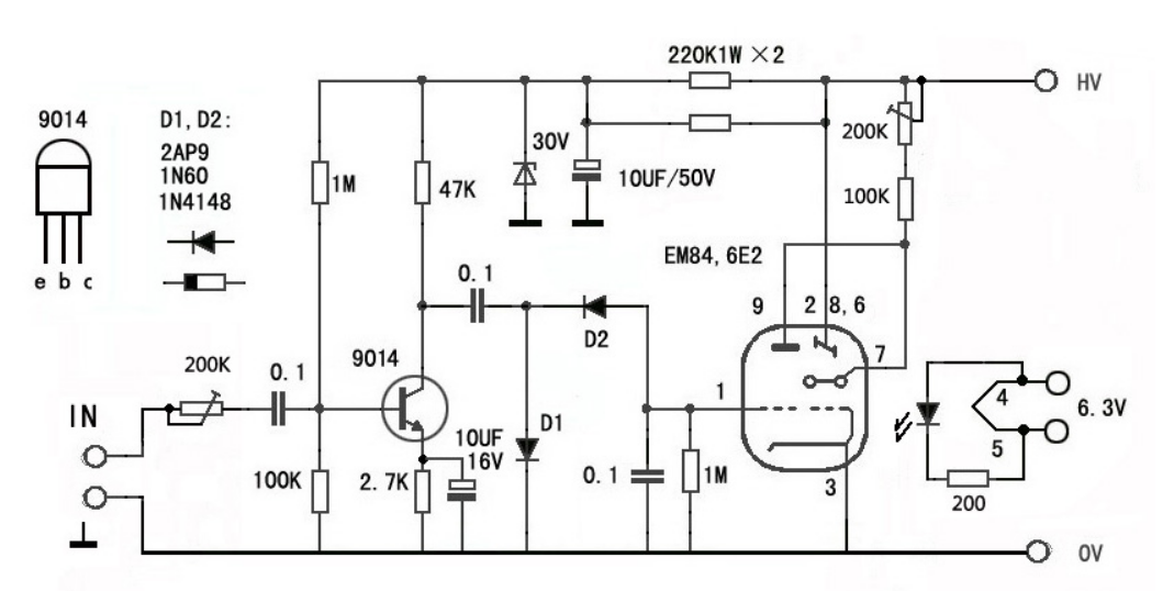 Зарубежные аналоги нашей лампы 6Е3П это EM84, EM87,6E2. В этой статье приведу несколько схем на этом индикаторе.