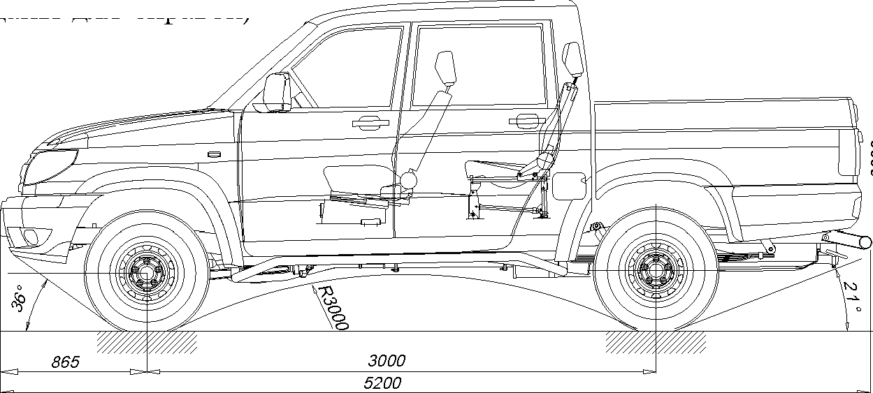 Автомобиль UAZ Pickup (УАЗ-23632) - грузовой (пикап), двухосный, повышенной проходимости, типа 4х4, с четырехдверной кабиной и грузовым отсеком.