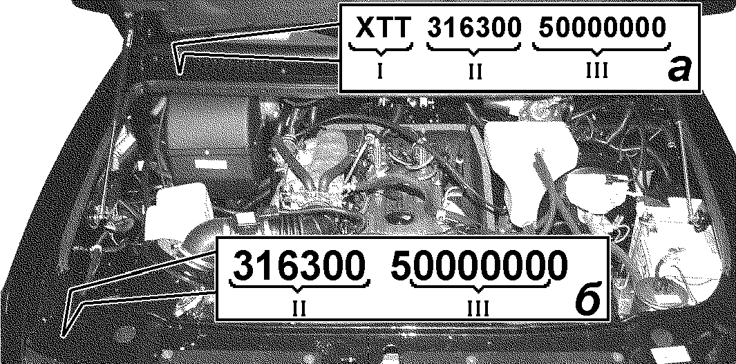 а -расположение идентификационного номера транспортного средства; б -расположение идентификационного номера кузова