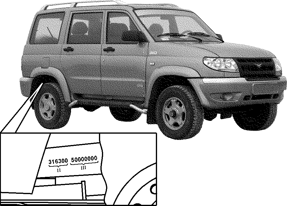 Рис. 1.2. Расположение идентификационного номера транспортного средства и номера кузова: