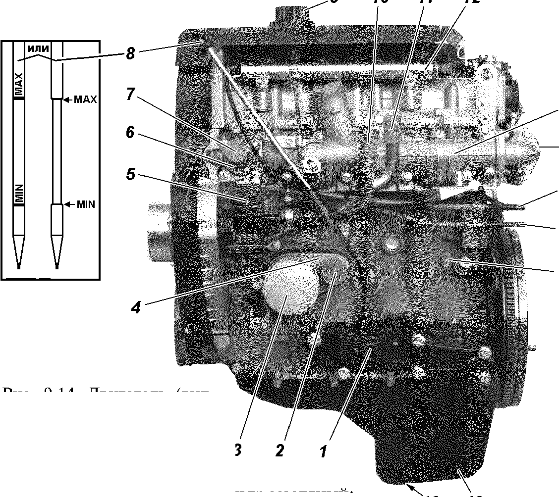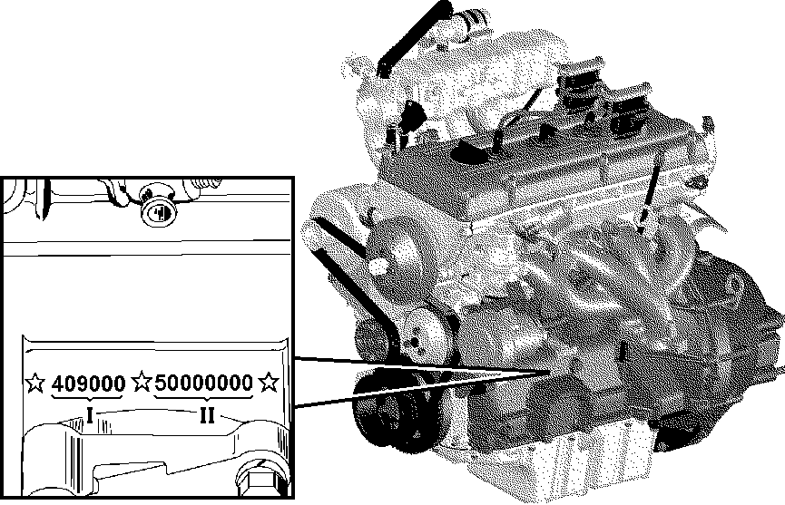 Идентификационный номер двигателя ЗМЗ-409 выбит на площадке, расположенной с левой стороны блока цилиндров, над бобышками крепления передней опоры двигателя (рис. 1.4).