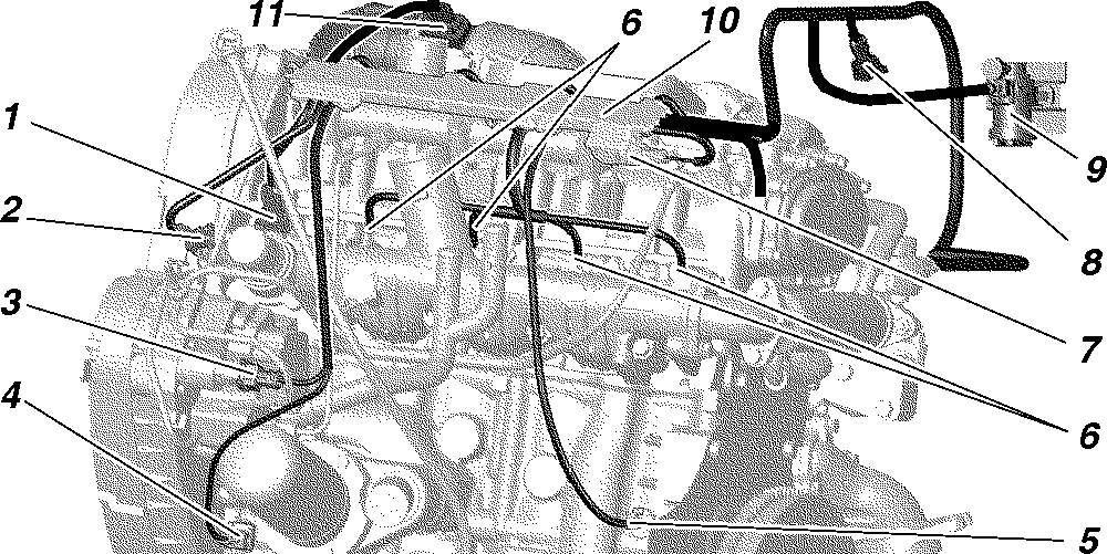 Идентификационный номер двигателя F1A (Iveco) выбит на площадке, расположенной с левой стороны блока цилиндров (рис. 1.5).