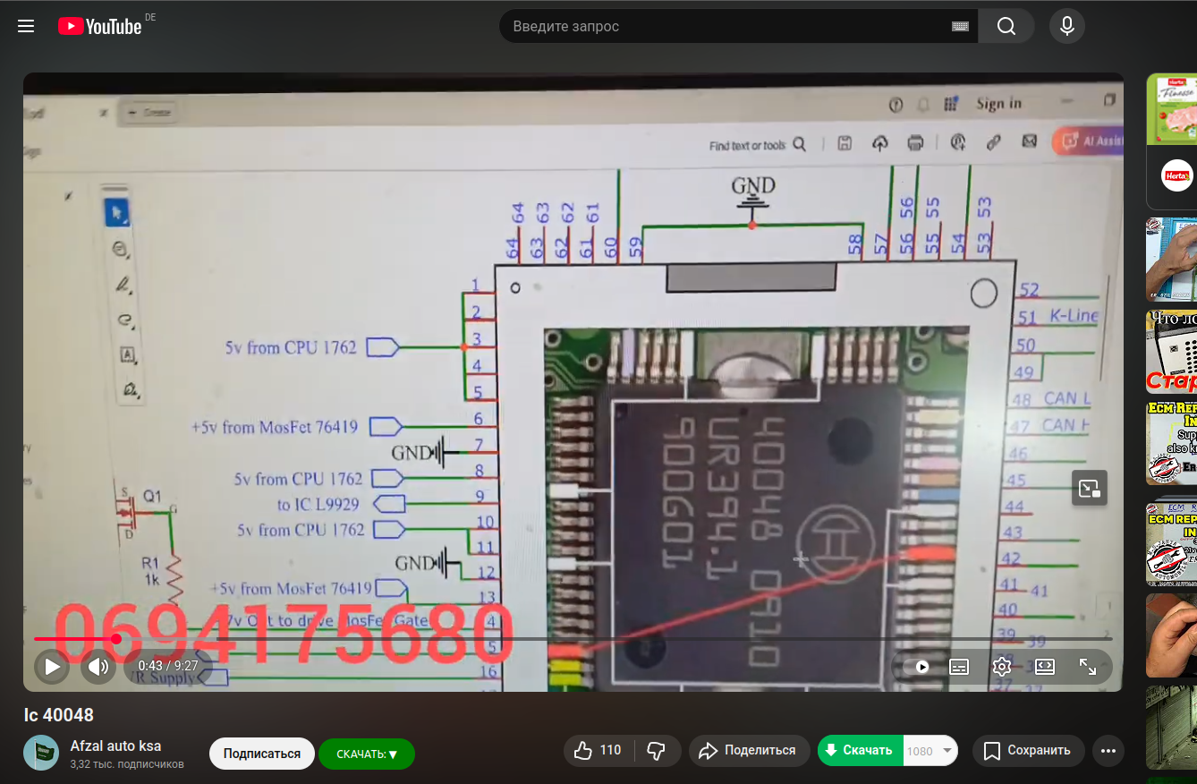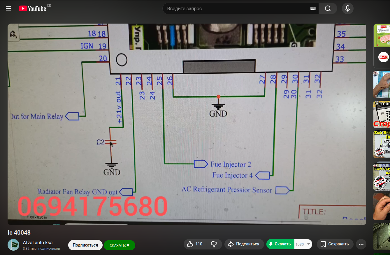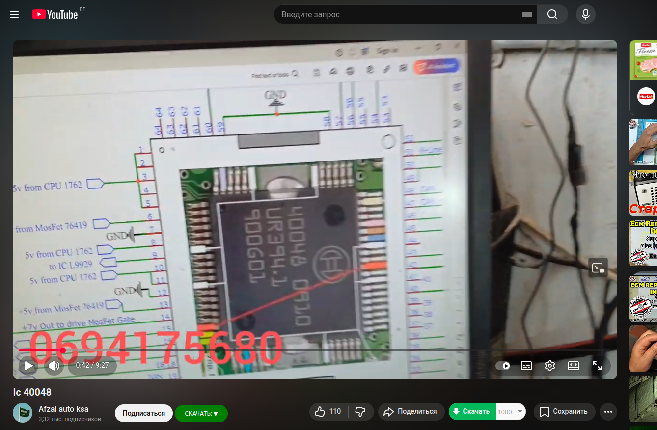 Поломки Уаз Патриот (2011) * не заводится вообще (бензин и 12 вольт есть. Какой то писк при включении с панели приборов. Лампочки и бензонасос не включаются вообще). * Заводится и едет, но только без датчика расхода воздуха (расход бензина 20л на 100 км, белый дым из выхлопной.) * Заводится, но не едет, или глохнет, или обороты 500 и меньше. на педаль газа не реагирует. (ну правильно, половина контактов земляных и питания на микроконтроллере отгорело, а он еще и работает) Ремонт - заменить Замок зажигания, блок иммобилайзера Bosch. Блок радиозамка, или носить с собой два ключа. Заменить центральный блок управления - ECU? ЭБУ с тремя новыми чип - ключами. Запчасти на почти 100 тысяч руб . и еще - может быть - все три косички проводов под капотом, только по салону - целая и менять не надо. В сумме почти 200 т. р. - как ремонт мотора или новый блок двигателя. ( Причина - чаще всего обрыв ремня и проводков к датчику, или - оплавились и замкнули к датчикам кислорода - или - вообще нагрелся до красна стартерный провод 60 квадратов - да еще еле машину потушил, залил все водой из канистры и огнетушителем.) .. Стартерный теперь от Камаза и подвязан проволокой под машиной и за мотором. Поддон он не расплавит и рулевую тягу то же, пожарку вызывать не понадобится. Датчики кислорода - примотаны за косичку проволокой - и к кузову, там как раз железочка, рядом с выхопным коллектором, но - подальше от него. Датчик расхода воздуха - проводки примотаны изолентой к гофре сверху, гофру ремень не перервет. Вот три поломки, еще может быть и из - за предохранителей.. Разобрал блок управления Уазика. Настолько сделан хитро, что при замыкании или обрыве почти любых проводов на датчики - выгорает напрочь, с дыркой посередине платы. И его заменить целое дело, стоимость под 600 евро, делается только в Европе. Хоть программы появились - не надо еще менять иммобилайзер и 3 ключа сразу. Пробую две платы починить - перегорает, похоже, дорожка от земляного провода и от питания, чипы на первый взгляд целы. Чип без прошивки - как раз можно купить, и который интерфейсный 40048, и и еще драйвер с управлением по spi tle8209-1r . кусочки схемы и распиновки от 40048 - драйвера управления инжекторами и компрессором кондиционера. (не нашел схему, она почему то доступна только с Украины.. выдрал из видео) кстати, схема нарисована совсем не точно, проверять! Там, где подписано 5в с процессора - часто не питание, а сигнал. Питание вроде только на 10 лапе, и то там вроде не 5 вольт - с транзистора не идет. у процессора TriCore два питания и земля конечно,Vdd Vddp Vss. https://www.youtube.com/watch?v=wp_J5K34Zr8 и фото платы, где обычно большая дырка - по номиналу трех резисторов - черных без маркировки - это обычно 4k7 а может 9к1 - подтяжка входа МК на питание или присаживание на землю. Ща померяю. 6300 Ом, или 6к3. Это только один померял, два других оторвались. Поставлю такие же, подпаяв тоненькой проволочкой от обмотки катушки. Земляной и питание - надо восстановить, как на фото. Внутренние слои платы - если повезло, то целы, а так - все 300 с чем то соединений прозванивать, это долго. * все 3 резистора на питание, 12 вольт после реле - подписано на схеме, и на сигналы процессора. резисторы. на снимке у двух почти квадратных контактных площадок.. сверху чуть левее от центра три не подписаных резистора - по 6400 Ом. То есть, померял один, два других потерялись - это снимок исправной и новой платы. Верхние две 